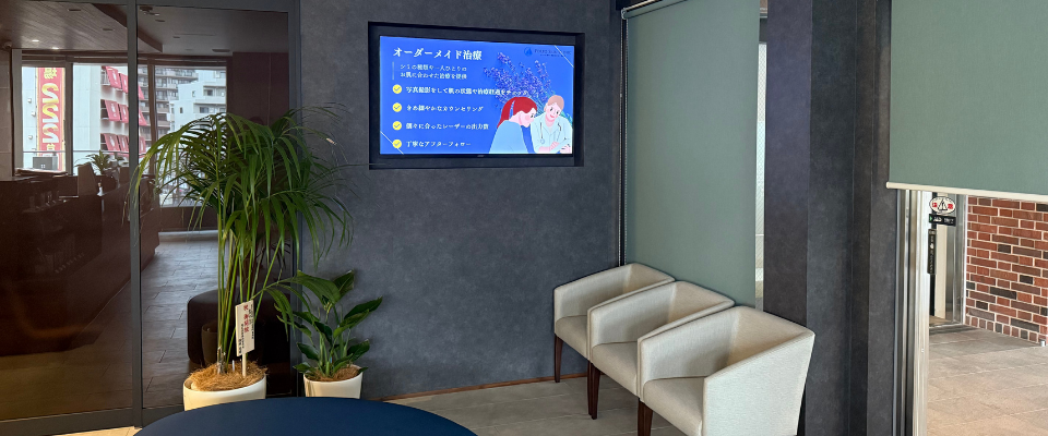 待合室や受付で、診療案内・キャンペーン・注意事項などを動画で表示。